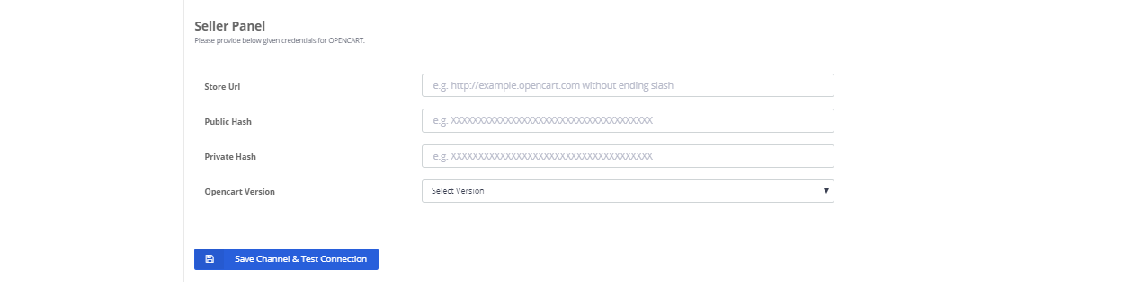 5. Fill in the Parameters i.e Store Url, public Hash, Private hash (as saved from the OpenCart panel), and Opencart version